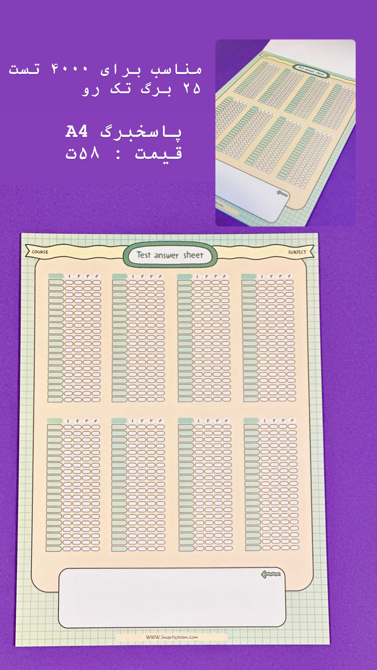 متاسفانه این کالا در حال حاضر موجود نیست. میتوانید از طریق لیست بالای صفحه، از محصولات مشابه این کالا دیدن نمایید.دفترچه پاسخبرگ سرچسبی